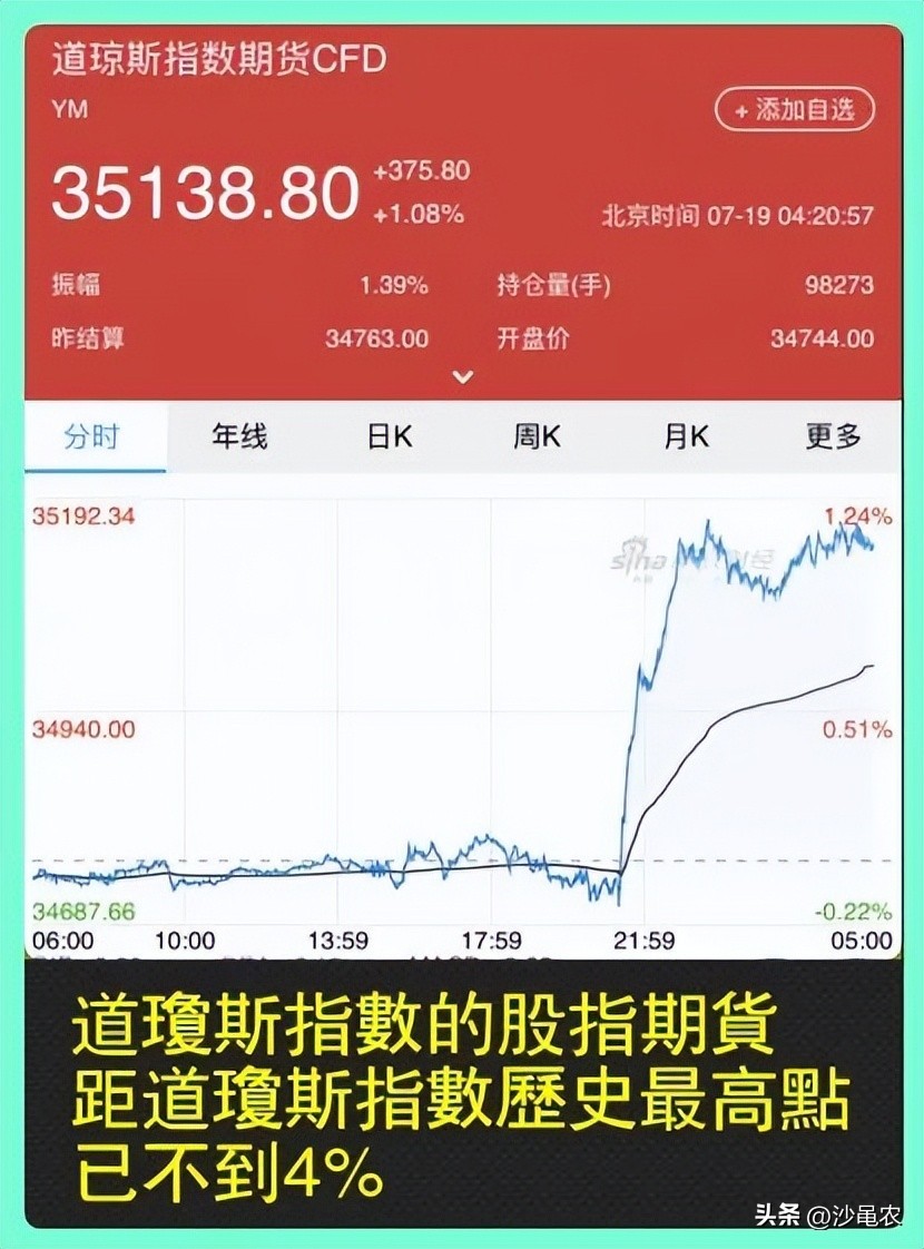 下图为道琼斯指数的股指期货今日走势——