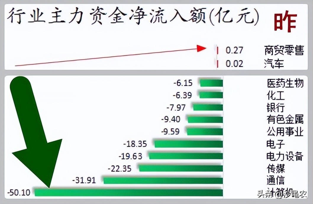 沪深两市主力资金昨日净流出222.37亿元。其中创业板净流出73.22亿元,沪深300净流出46.8亿元,科创板净流出1.27亿元。