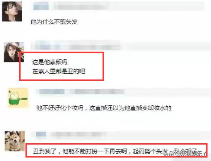 对此,不少网友在看了直播后,各种吐槽丁禹兮,觉得他不注重形象,又被丑到。知道直播为什么不收拾一下自己?这样不修边幅真的好吗?这样的颜值就是放在素人堆里都是丑的!