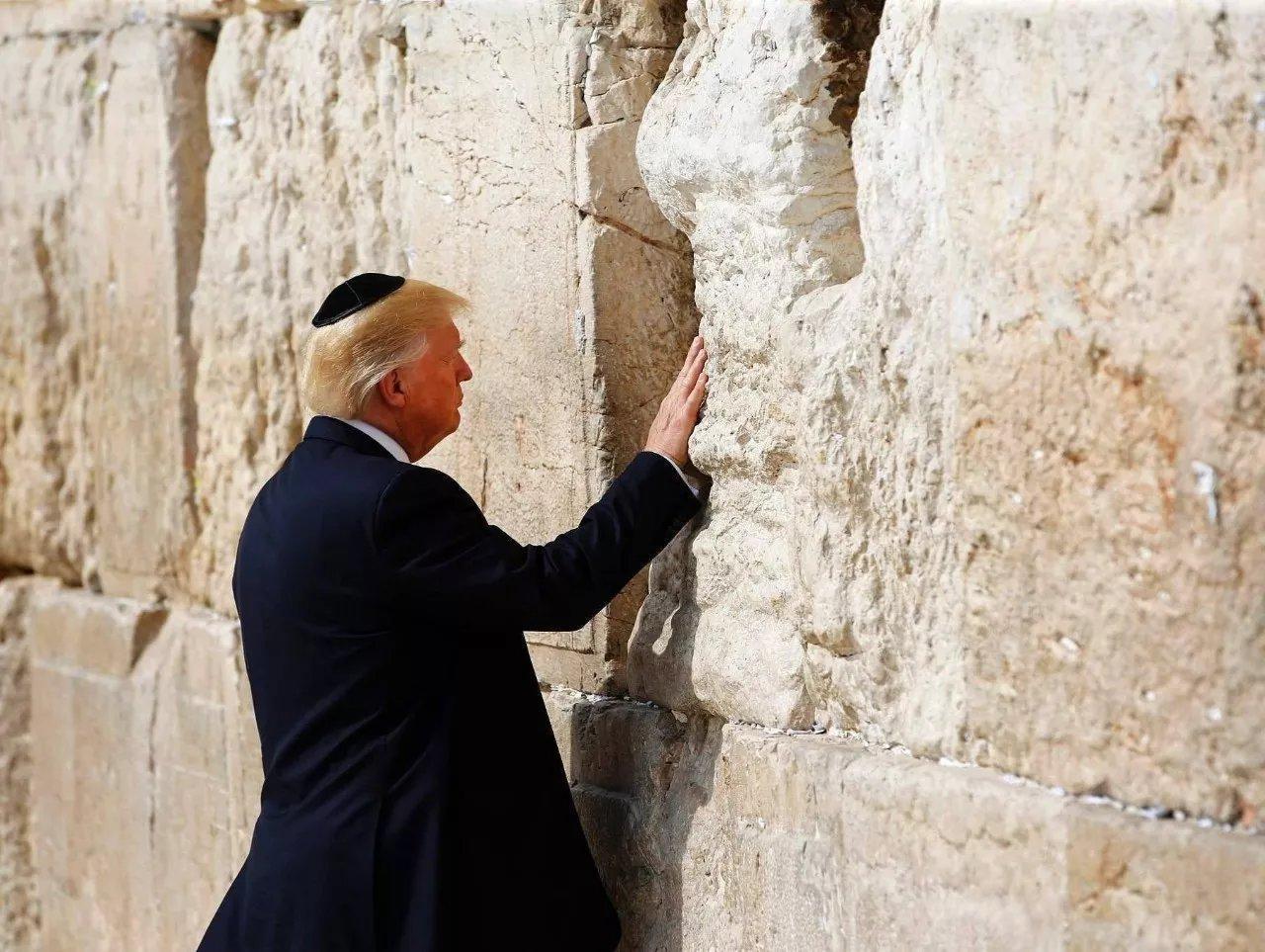 (特朗普在耶路撒冷“哭墙”旁祈祷)