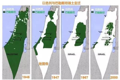 第二次世界大战结束后,1947年11月,联合国安理会通过决议,规定在巴勒斯坦西部建立阿拉伯国家和犹太国家。 1948年5月14日,犹太人宣布成立以色列国。 1988年11月15日,巴勒斯坦在阿尔及尔宣告成立,巴以边界尚未确定。