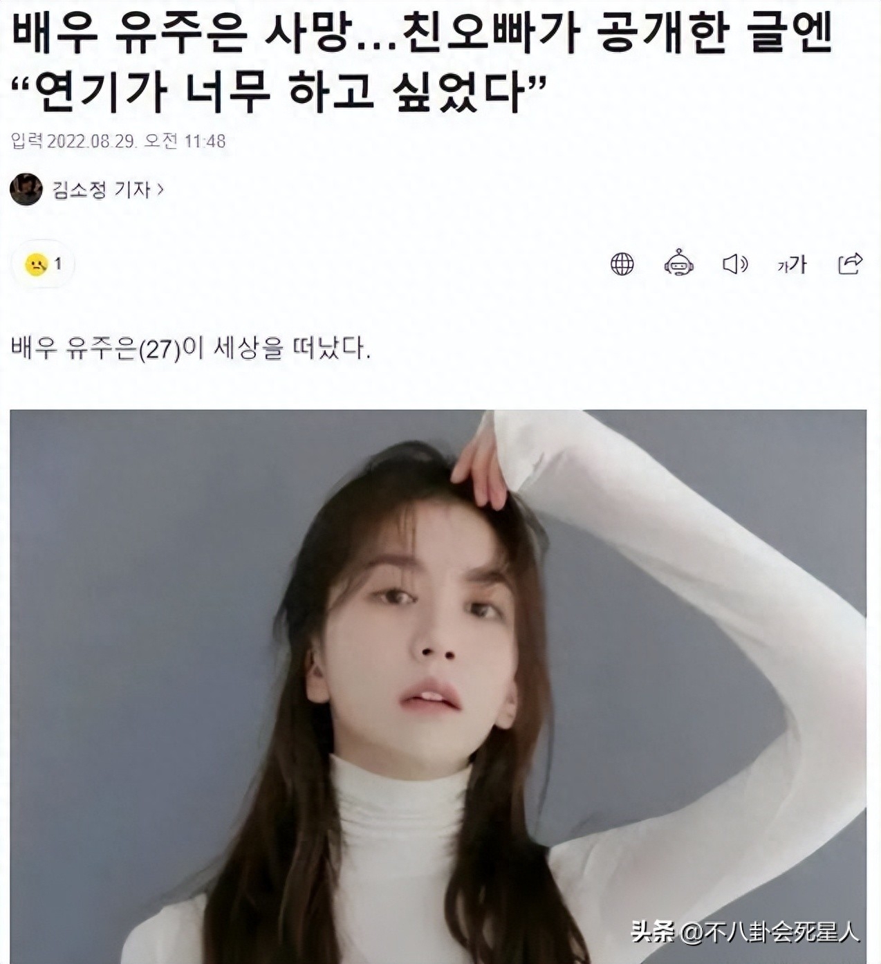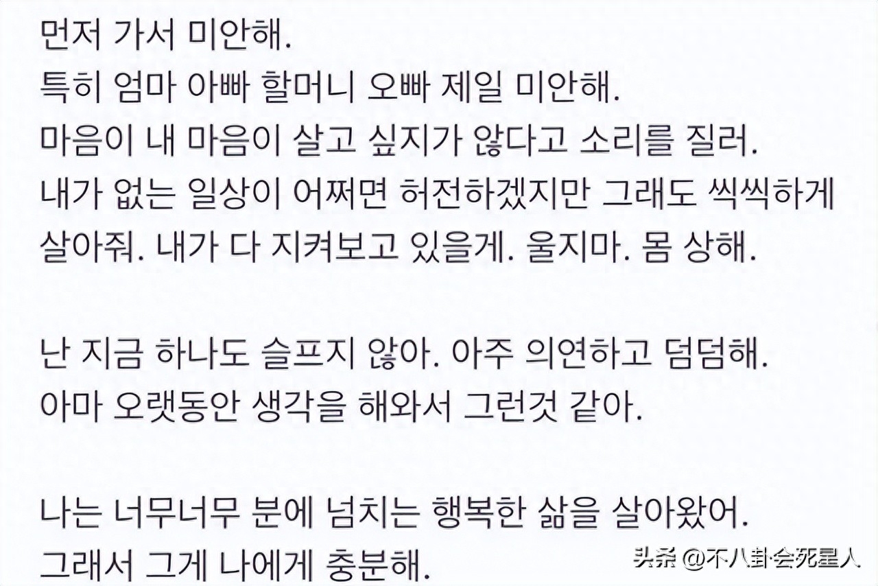 27岁韩星自杀身亡!其哥哥曝光留下遗书,称生活太不容易