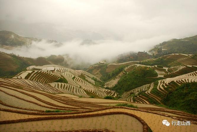 走进大寨,观梯田风光,河水蒸发的雾气,笼罩在梯田上方,形成海市蜃楼般的农田美景。人们怀着历史的追忆感走进大寨,又带着现实的触动感走出大寨!