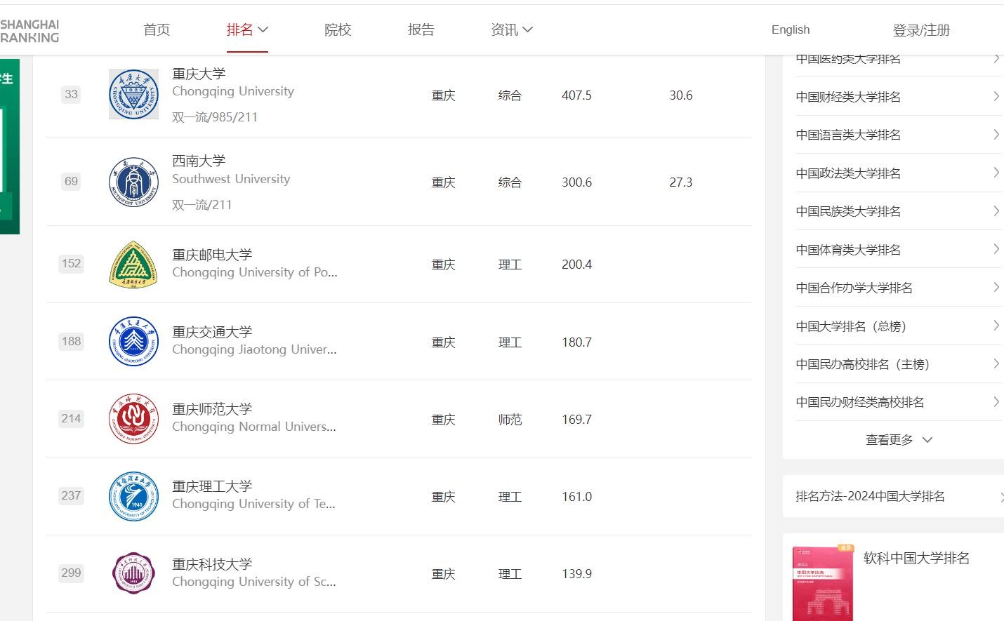 重庆作为西南地区的教育重镇,其高等教育体系一直以来都备受瞩目。近期,重庆高校的最新排名出炉,不仅反映了各校在学术、科研、教学等多方面的综合实力,也为学生、家长以及社会各界提供了一个重要的参考依据。在这次排名中,几所代表性高校的表现尤为引人注目。