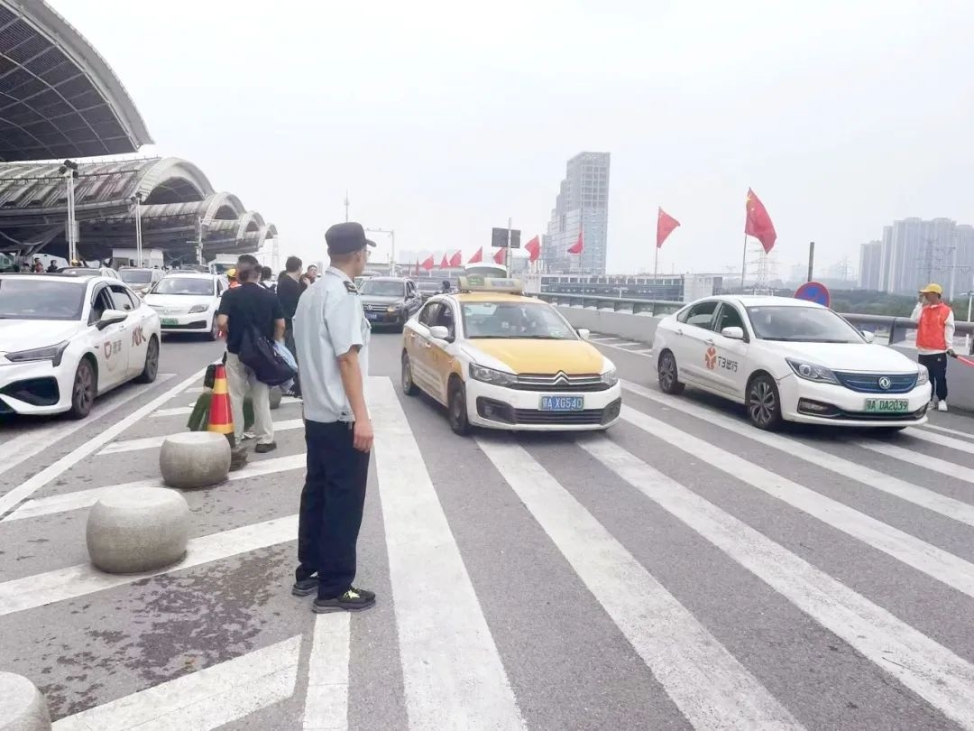 此外,为及时疏导车流,保障站区道路通畅有序,武汉站综管办在多个点位设置7个固定值守点和5个流动巡查岗,并增援4名协警,守巡结合,加大车流疏导力度。同时,及时劝离及清理三个停车场长期停放车辆,协调周边停车场约900个有效车位用于停放送接站车辆。节日期间,综管办还协调市交通局客管处在东、西高架落客平台设置电子围栏,禁止网约车在此接单载客。