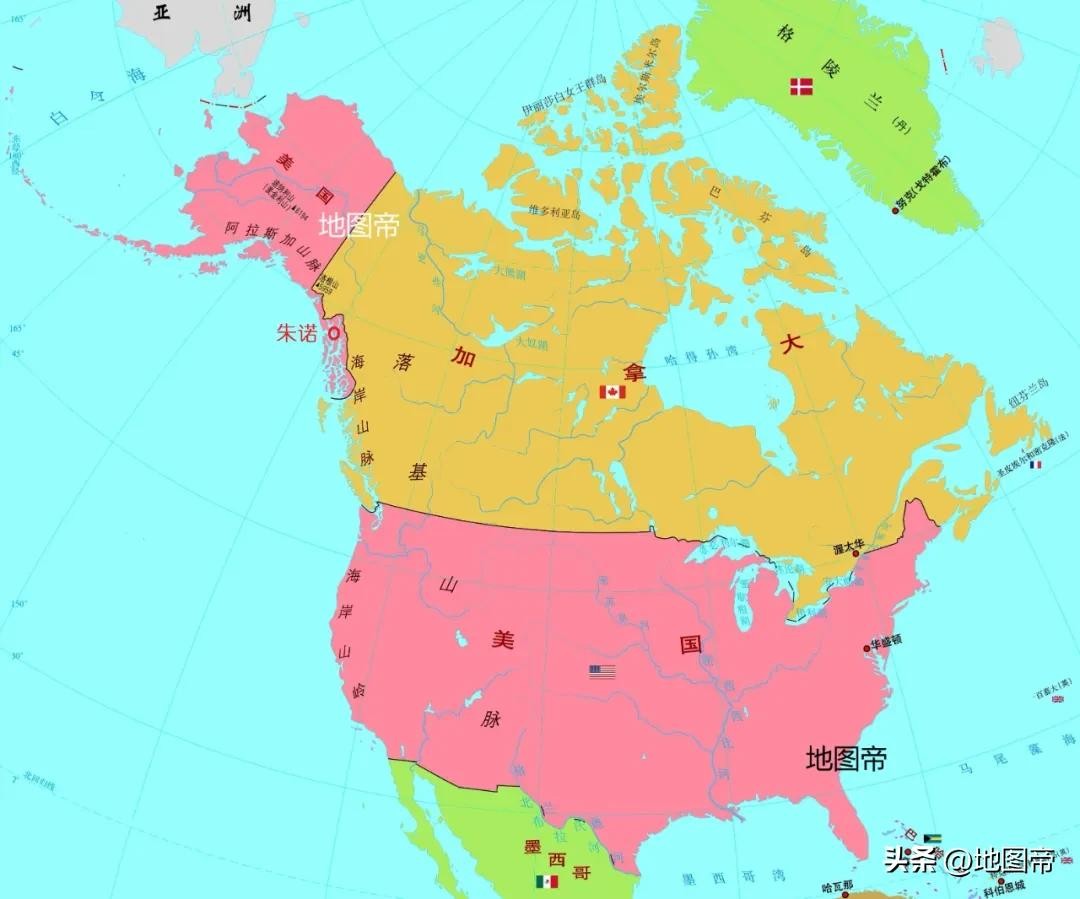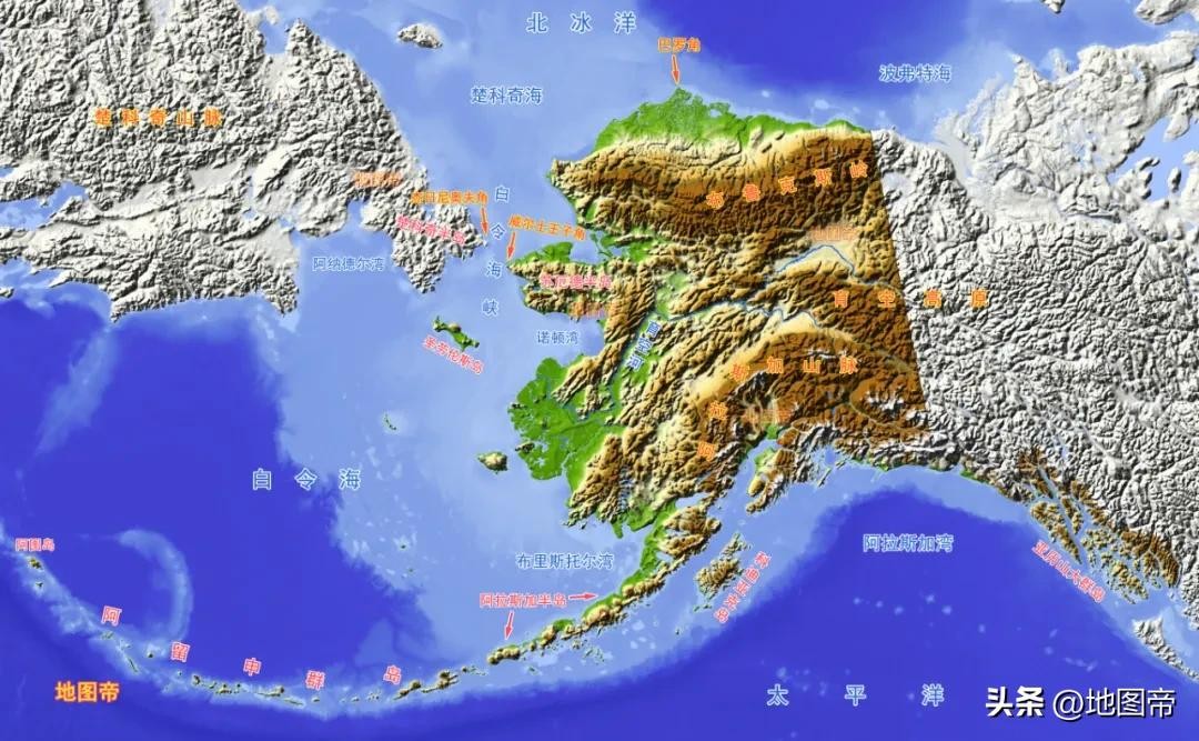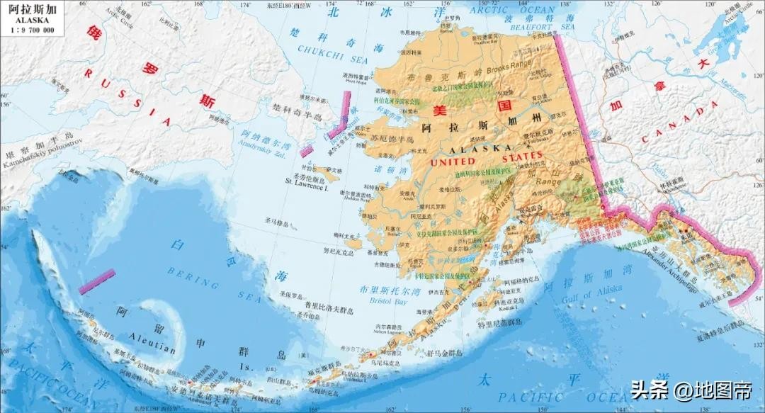 阿拉斯加易主,美国多了块面积超大的飞地,还差点把加拿大挤出太平洋沿岸,你看阿拉斯加东南角有个长长的尾巴。从此之后,阿拉斯加就成了美国距离俄国(沙俄、苏联、俄罗斯)最近的陆地。