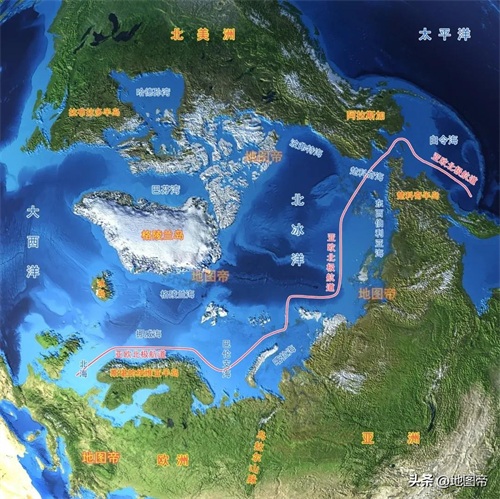 海面上,俄罗斯将占据北冰洋一半以上的经度线,掌控北冰洋航道的必经通道白令海峡,几乎将北冰洋视作内海。东亚中日韩出口物资去西欧,走北冰洋航线不但距离短,也不用担心苏伊士运河堵船,但绕不开白令海峡。