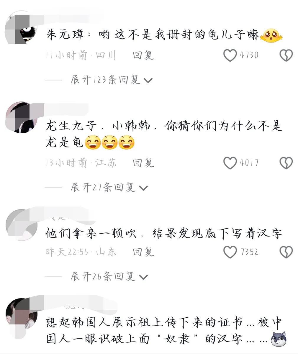 网友们笑不活了,龙生九子,各有不同,为什么韩国就是龟