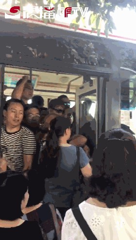 尽管车上早已人满为患,可是早上时间宝贵,车刚停下,乘客们就蜂拥而上,竭尽所能地向车上挤去,车厢内,乘客被挤得大呼小叫。