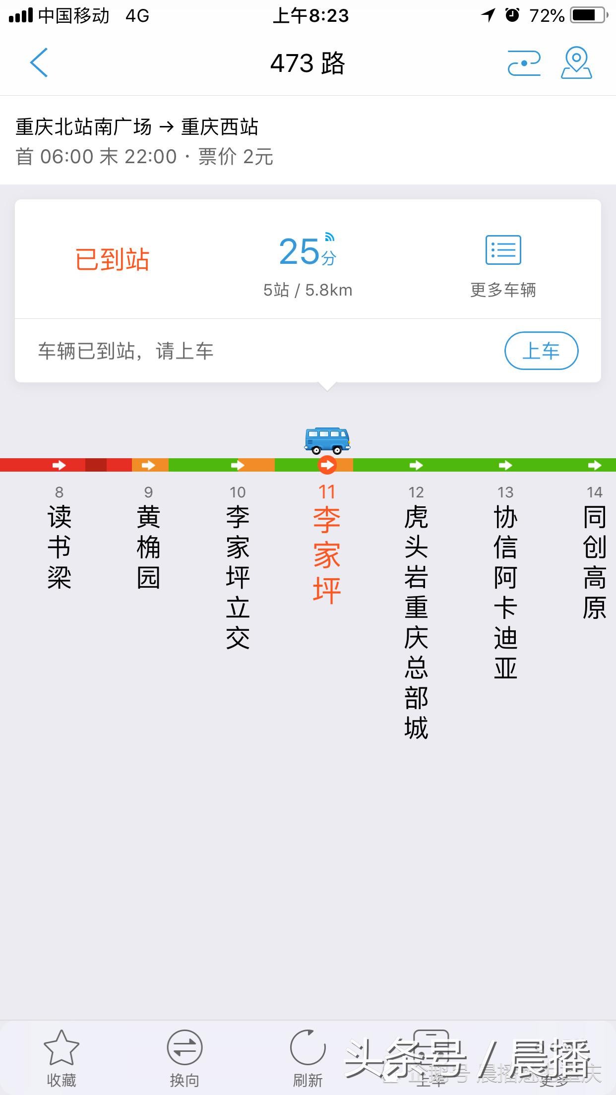 今天早上8点23分的473路李家坪站来车状况