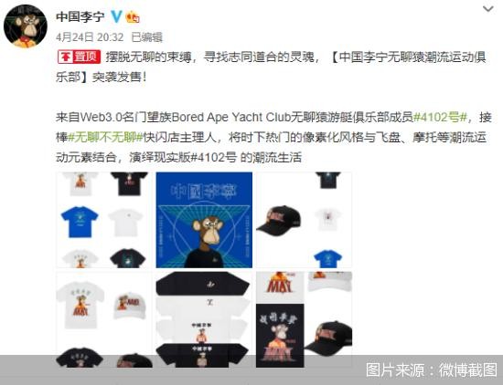 李宁便是近期选择与无聊猿牵手的品牌之一,并随着4月24日中国李宁官方微博上一则“【中国李宁无聊猿潮流运动俱乐部】突袭发售”的消息而受到各方瞩目。且从当下公开的信息与图片可以看出,此次不仅将根据编号#4102号推出多款中国李宁无聊猿潮流运动俱乐部系列服装,编号#4102号还将成为无聊快闪店的主理人。
