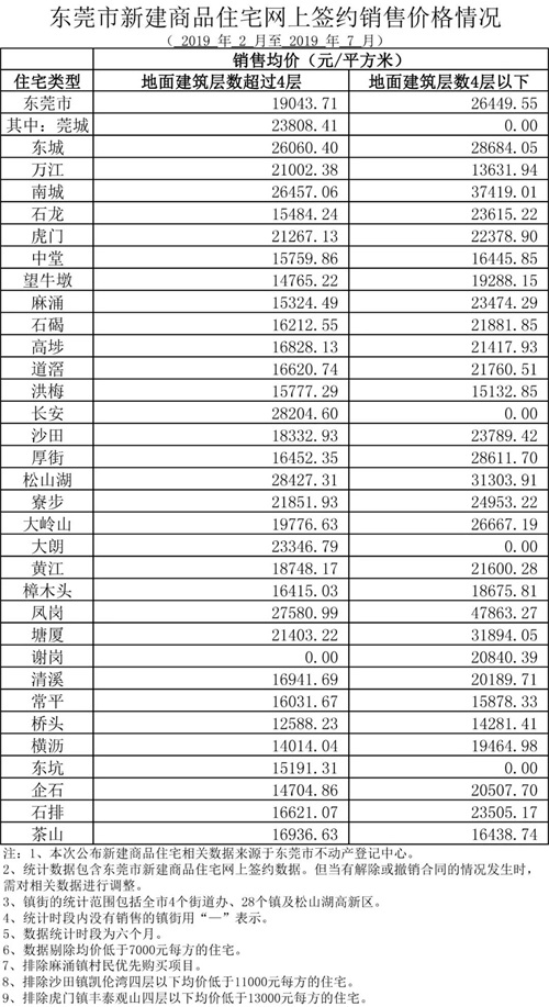 数据显示,东莞近半年来全市均价为