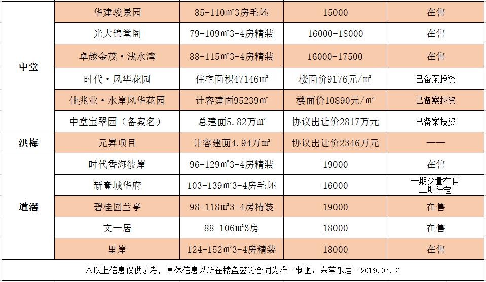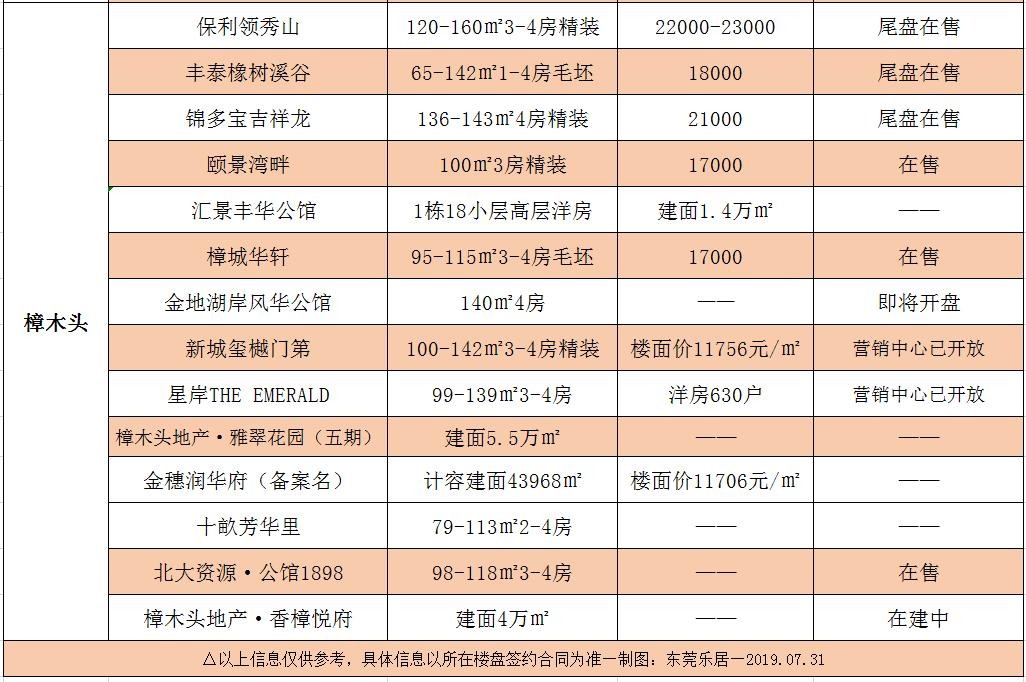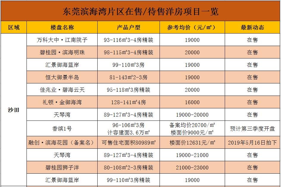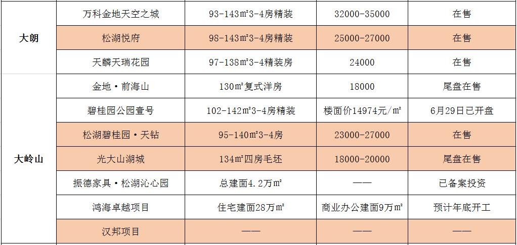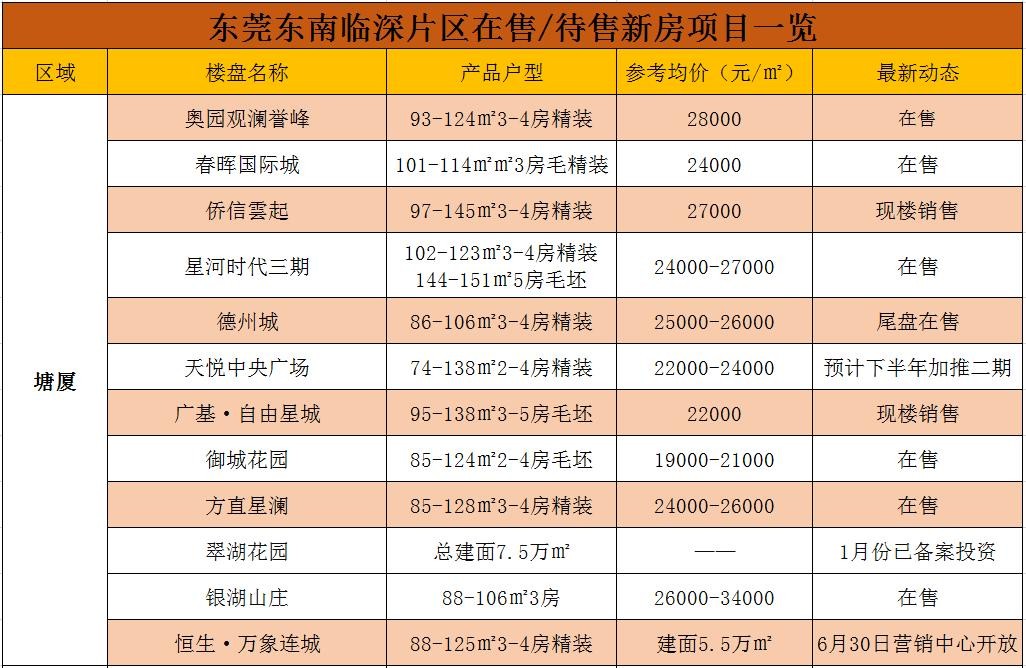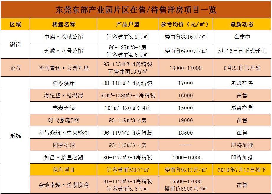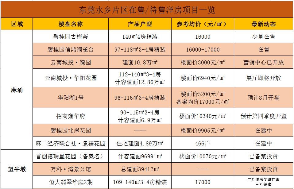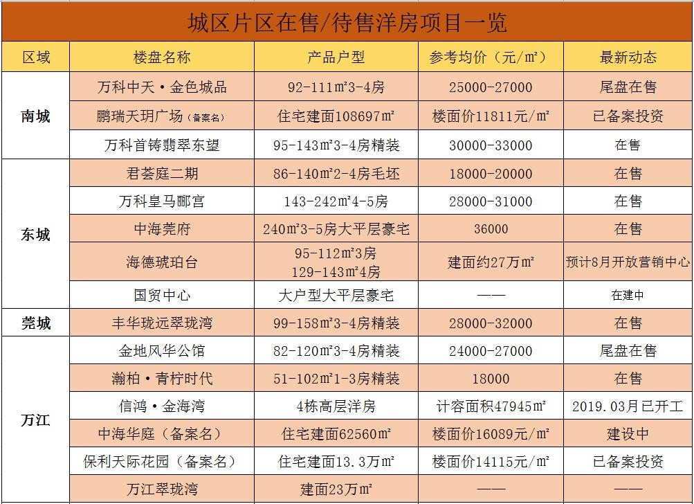 当下东莞在售楼盘的价格表!