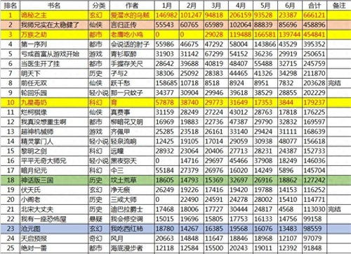 以上就是2020年过去了一半之后,起点月票总榜的一个排名情况,不知道这其中是否有你喜欢的作品呢?另外数据系个人统计,或有谬误,欢迎指正。