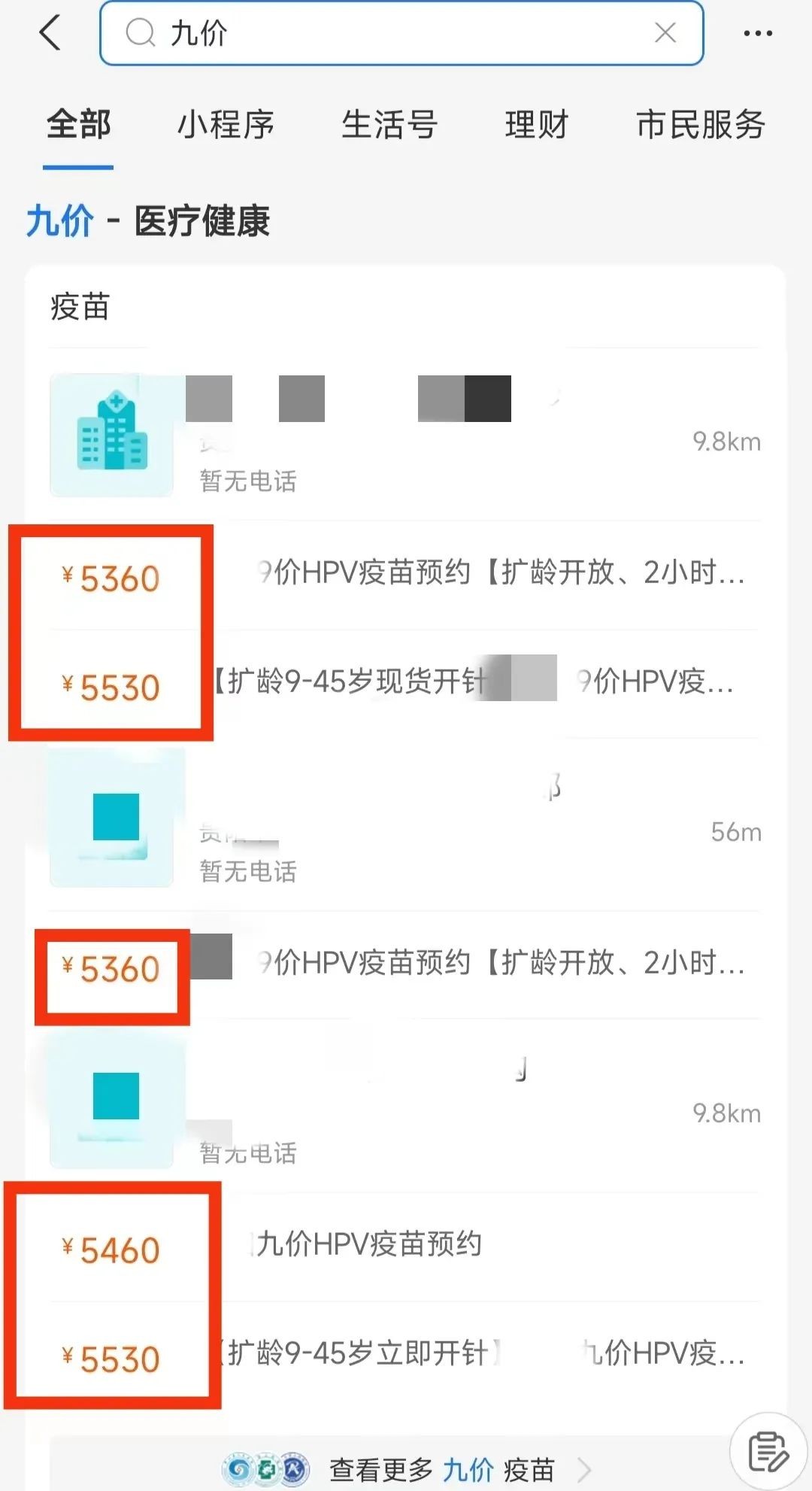 类似的溢价不要太常见,打开支付宝,在里面随便一搜,就能看到一长串九价预约套餐: