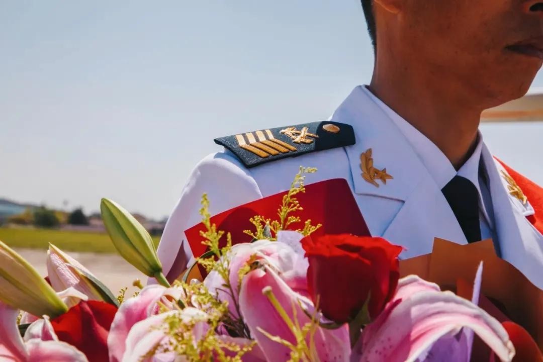驻训飞行员为“兵王”献花