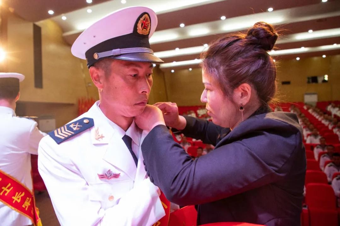 部队邀请军嫂为“兵王”换上新军衔