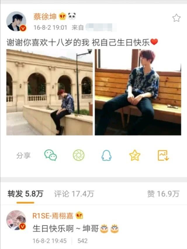 一个是NINE PERCENT的男团成员,另一是R1SE的成员,看似八竿子都打不着,但其实他们两人私下关系十分要好。2016年,蔡徐坤曾发过一条动态为自己庆生,当时焉栩嘉就评论道:“生日快乐啊~坤哥。”一句坤哥无比亲切,网友也顺藤摸瓜理清两人的关系。