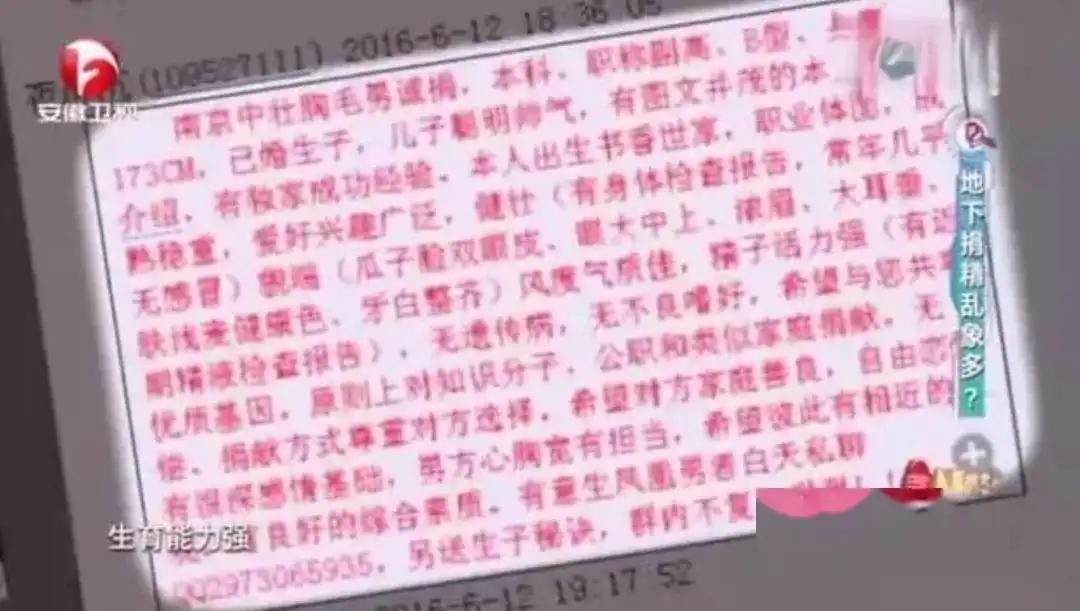 在一些社交软件上,频频出现关于“捐精”的信息,许多男性自称可以提供高质量的精子,并且愿意以较低的价格进行捐精,这些精子并不是通过正规的渠道,而是直接送到女性的身体里面,这样的方式被称为“地下捐精”。