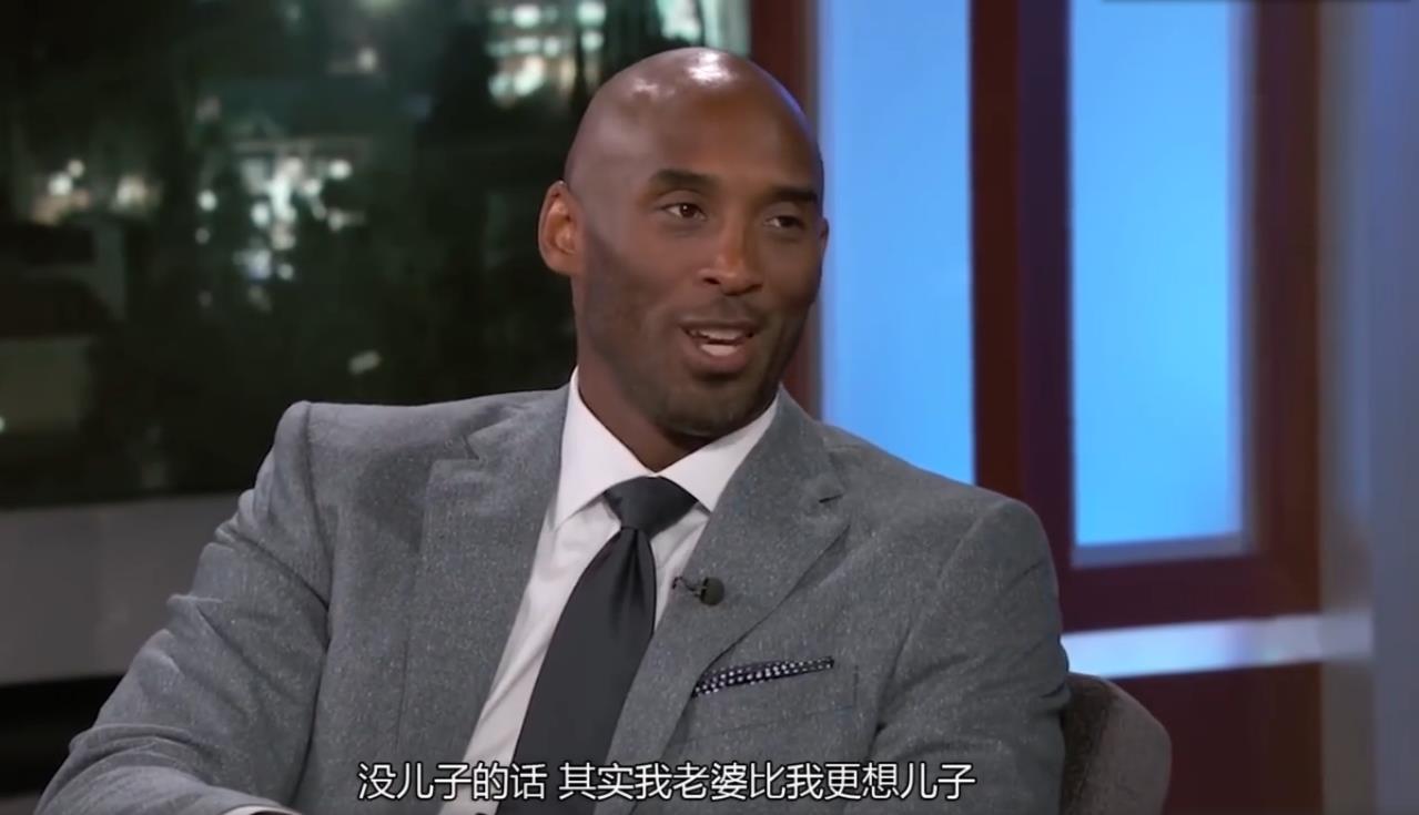 吉米问如果科比有儿子,那儿子将会面对着巨大压力,科比回答道:“也许是的,我喜欢女儿们,她们很棒。其实,妻子比我更想要一个儿子。她一直跟我说,你不要一直说喜欢女儿,说着说着就成了,我一说我喜欢女儿,她马上说,‘别再说了!你喜欢儿子!’”