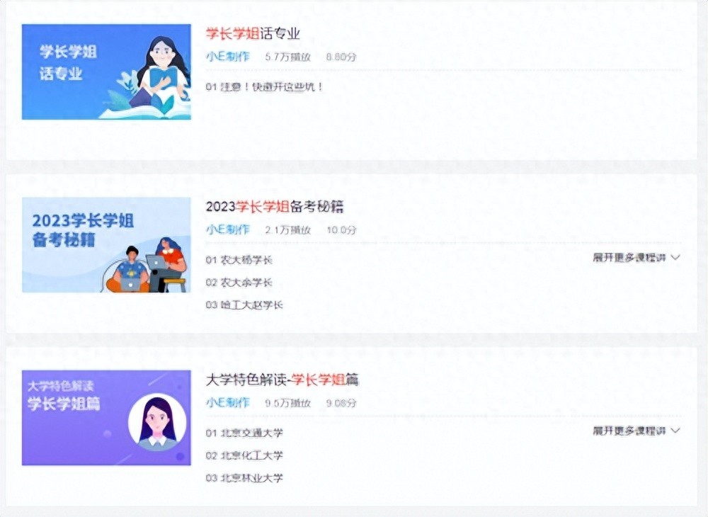 《学长学姐说》邀请到了全国多所高中的学长学姐,让这些孩子们的同龄人亲口诉说自己的高中学习方法,以及在高中阶段如何调整心态,摆脱“孤独”“焦虑”“畏难”“自卑”等负面情绪的经验。这项栏目目前收获了诸多好评。