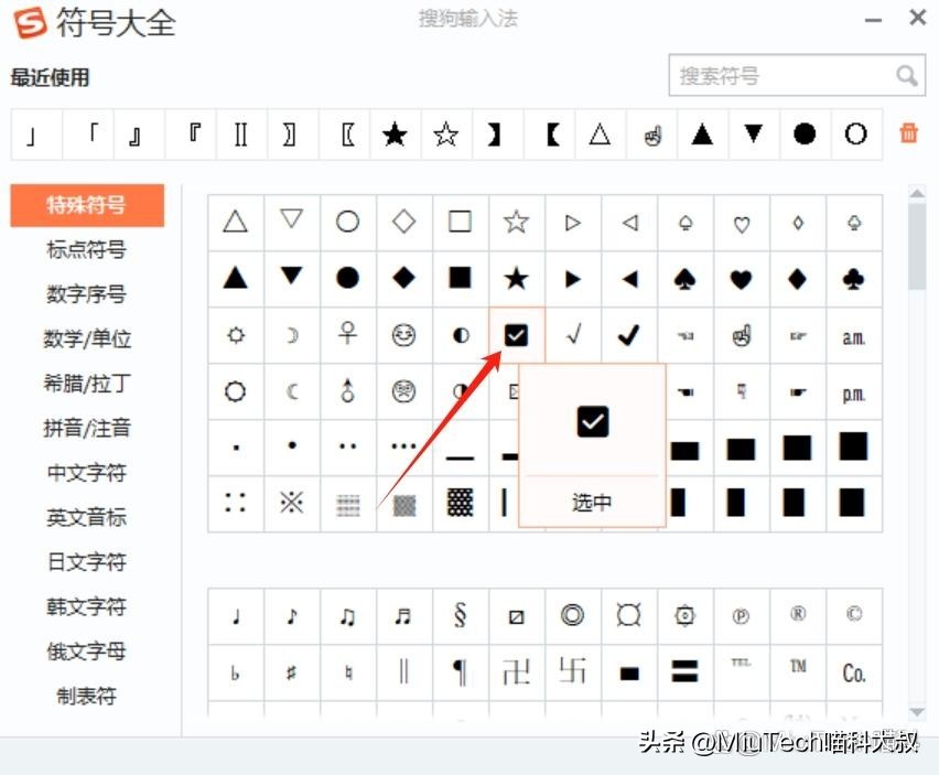 除此之外,你还可以直接从输入法的特殊符号里找到它。