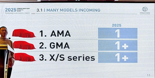 根据幻灯片,宝腾的X/S系列中至少有一款新车也将在2025年上市,其中最可能的候选车型是小改款的宝腾X50。