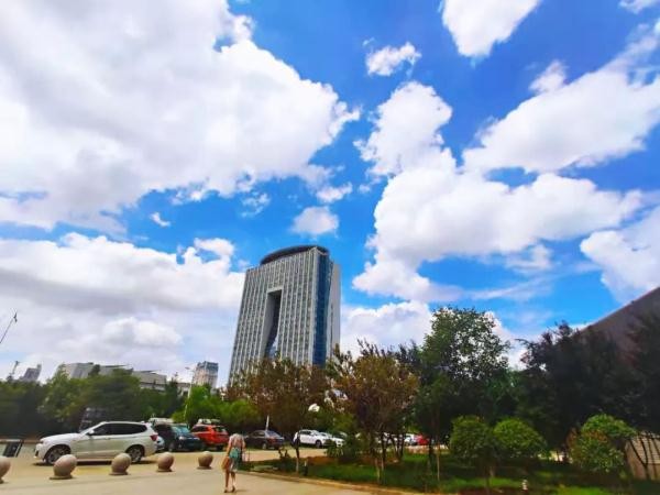 今天烟台的蓝天太美了整个朋友圈都被刷爆了大家纷纷拿出相机和手机记录下属于自己的“最美的蓝天白云”