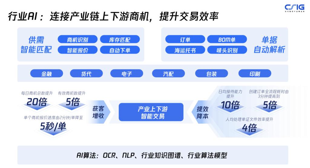 针对 B2B 商机撮合,腾讯企点商通充分整合 AI 能力和行业业务,实现智能商机识别、链接产业上下游,提高了中小企业的交易效率。