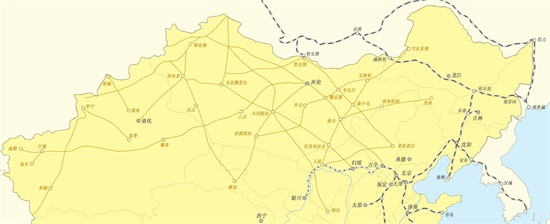 北方大港建成后,还需建设铁路网沟通腹地,“以海港为出发点,以多伦诺尔为门户,以吸收广漠平原之物产,而由多伦诺尔进展于西北。”在孙中山的计划中,多伦诺尔是整个西北铁路网的枢纽,以多伦诺尔为中心延展出八条铁路线。