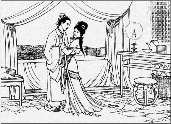 第二天宋秀才想辞别回家,但又舍不得青娘子,便说要带青娘子一块回家。孟林听了脸色一下变得阴沉,笑着对宋秀才说:“是我那里招待不周吗?我见你俩有缘才让你们在一起,你就再多留几日,别辜负我的一番好意。”