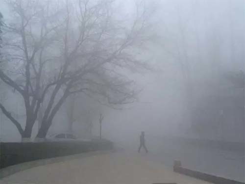 雾霾笼罩中的观音堂公园犹如恐怖电影的场景。。。