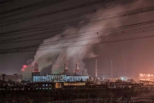 雾霾中热电厂24小时不停工作
