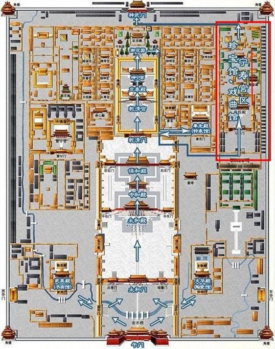 乾隆五十九年曾下谕:宁寿宫,乃朕称太上皇后颐养意地,在禁垣之左(左即东)。日后尤不应照雍和宫之改为佛寺。其后之净室、佛楼,今有之,亦不必废也。其宫殿,永当依今之制,不可更改。若我大清亿万斯年,我子孙仰膺天眷,亦能如朕之享图日久,寿届期颐,则宁寿宫仍作太上皇之居。