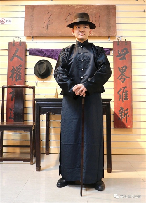 身着长袍马褂、头戴礼帽、脚穿皮鞋、手拄“文明棍”,这是民国时期常见的中国男性装扮。清朝覆灭后,中国的政治、经济、文化都出现了前所未有的革新。中国男性服饰在顺应时代变化的过程中,既保留了传统服饰的特点,同时也借鉴了西方男式服装的元素。本期为大家分享的藏品,是民国时期的“长袍马褂”。