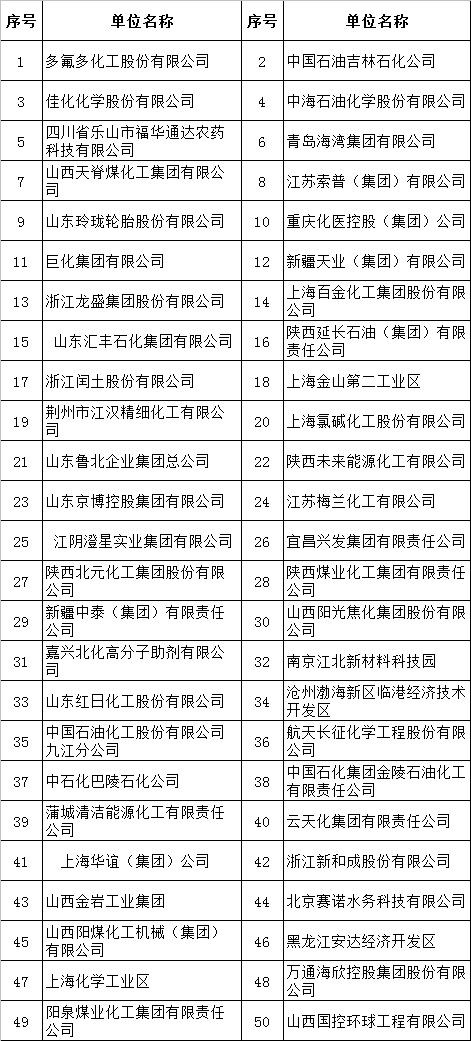 中国石油和化学工业改革开放40周年勇立潮头榜样(50家,排名不分先后)