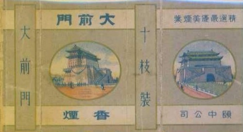 大前门是英美烟草公司于1916年推出的,曾在上海风靡一时。解放前,当时大前门有一句广告语为:“大人物吸‘大前门’落落大方”,较有著名。英美烟草公司的产品长期占上海全部产烟量的60%左右,大前门即是坚挺的产品之一,为了能在华求得更大的发展和争取更大的产销,又少交税款,英美烟草公司采用化整为零的手法,自1934年11月起注册建立华商之名的颐中公司,继续在上海、天津、青岛等地产销大前门