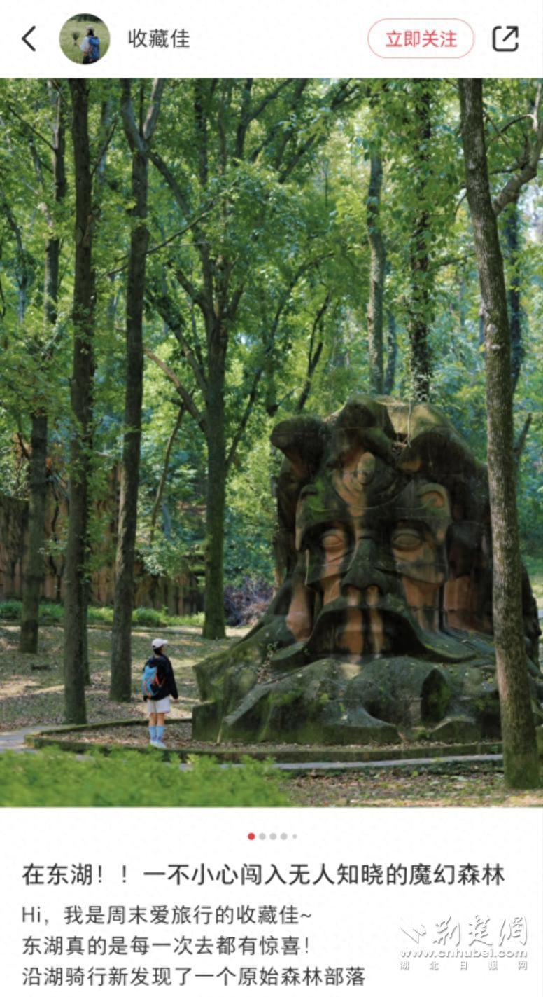 荆楚网(湖北日报网)讯(通讯员 邹卉)“在东湖!一不小心闯入无人知晓的魔幻森林!”近日,户外博主“收藏佳”在社交平台上更新编辑了一则分享,不少网友跟帖询问,想打卡同款路线。这条旅游路线在社交网络上受热捧,地点就在东湖磨山景区。