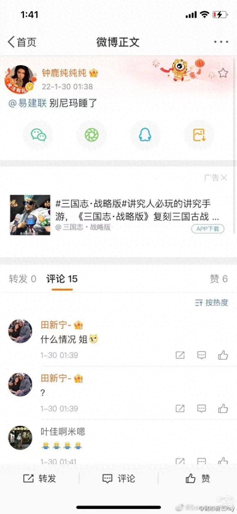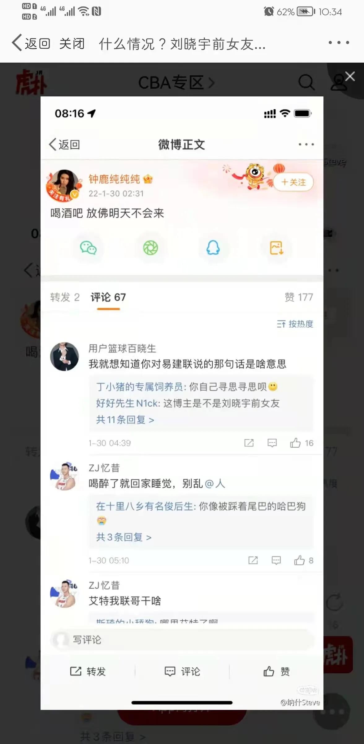 当年刘晓宇,易建联因为争夺钟鹿纯闹的沸沸扬扬,如今2022年1月30日凌晨钟鹿纯凌晨喝多艾特易建联,别尼玛睡了,有故事啊