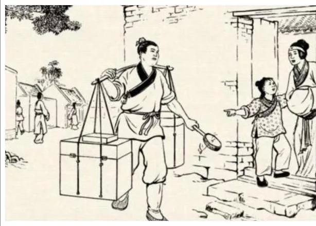 一路上摇着拨浪鼓,起劲地吆喝着……不知不觉地走出很远。