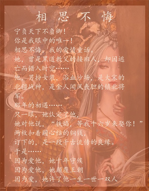 “媚可以接受燕王的挑战,却不会将将军视为货物般与人打赌,不论输赢与否,都由将军决断。”一番话说的冠冕堂皇,字字情真,只有媚知道自己这番话也同样卑鄙,她算准鉄焰不会丢下铁府众人不管,她算准鉄焰自责的心理,她算准就算为了铁家血脉,鉄焰也必定会选了她。