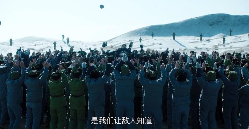 一眼望不到边的荒漠上,陡然人声沸腾,一群热血的科研工作者们克服艰苦的条件,终于在氢弹研发上取得了突破。于敏被大家抛向了空中,科学家们的欣喜若狂让肃静的荒漠瞬间不再是寂静之地。