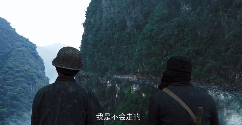 在两座陡峭的大山面前,深入基层的张富清立下了“不修好这条路我是不会走的”誓言。这里的镜头语言也是一个绝妙的隐喻——一位扎根偏远山区的干部,有着的“愚公移山”一般的精神。