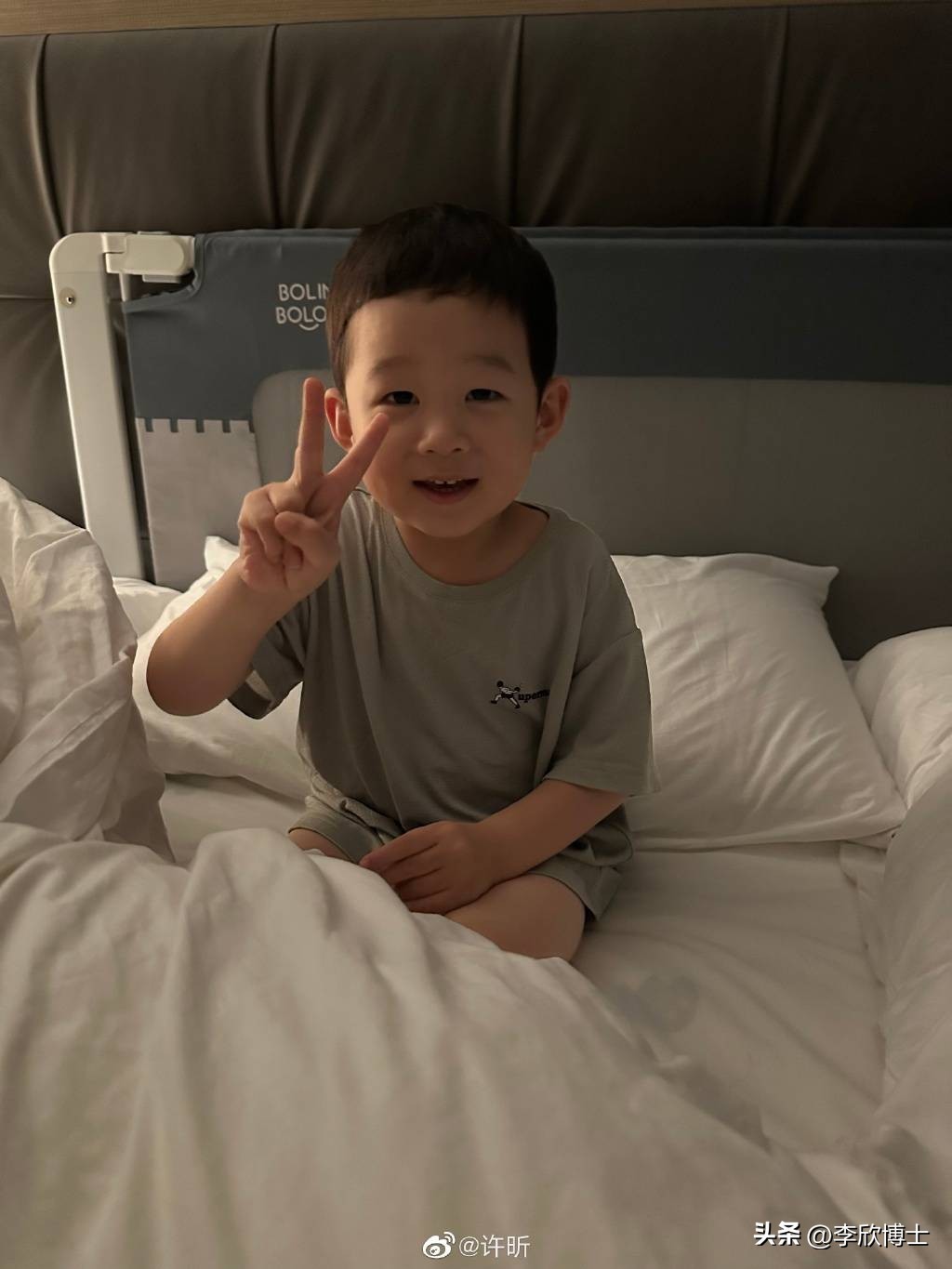 许昕晒出儿子穿着灰色短袖坐在床上的照片,一只手比着耶,手指修长,看来也是打球的好苗子,继承了爸爸妈妈的基因。他虽然年龄还非常小,但是从照片中可以看出,他的手指修长,跟许昕的手指很像,穿着一件灰色上衣,乖巧坐在那里,网友笑称:怎么不给孩子穿上裤子再拍,给孩子留点面。