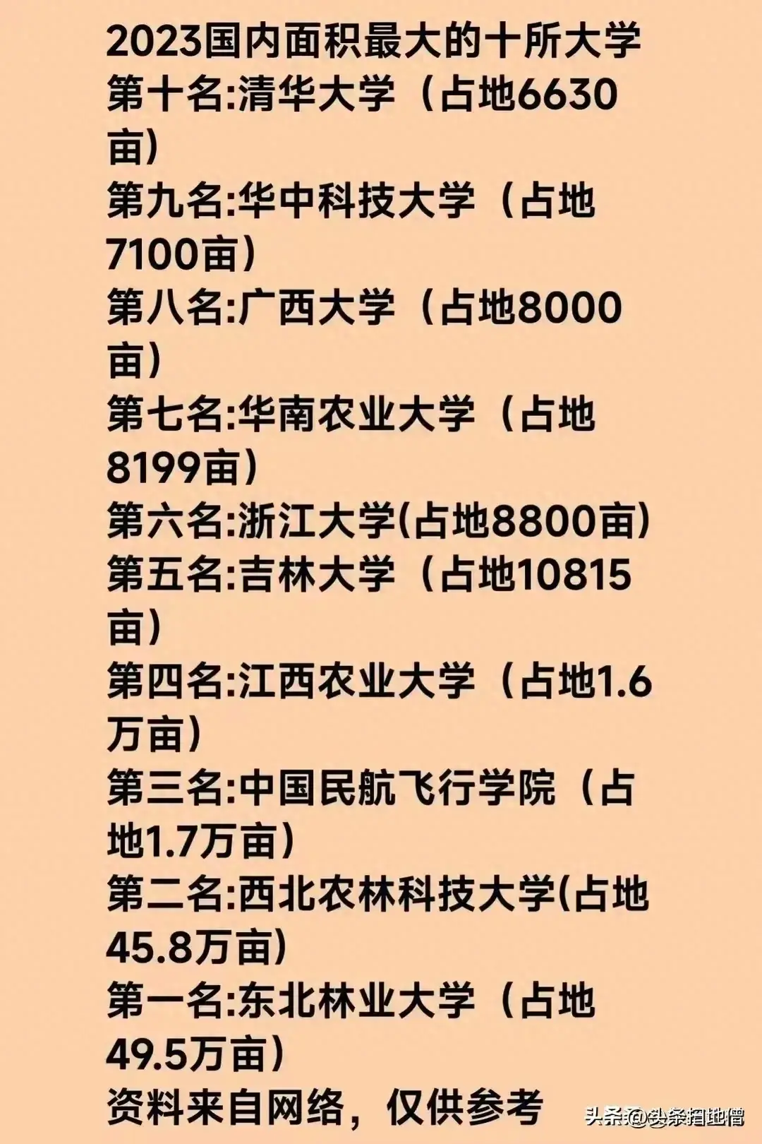 在我国,面积最大的十所大学无疑拥有广阔的校园,它们分别是:新疆农业大学、重庆大学、南京农业大学、北大荒集团有限公司、华南农业大学、华中农业大学、湖南农业大学、陕西师范大学、兰州大学和吉林农业大学。