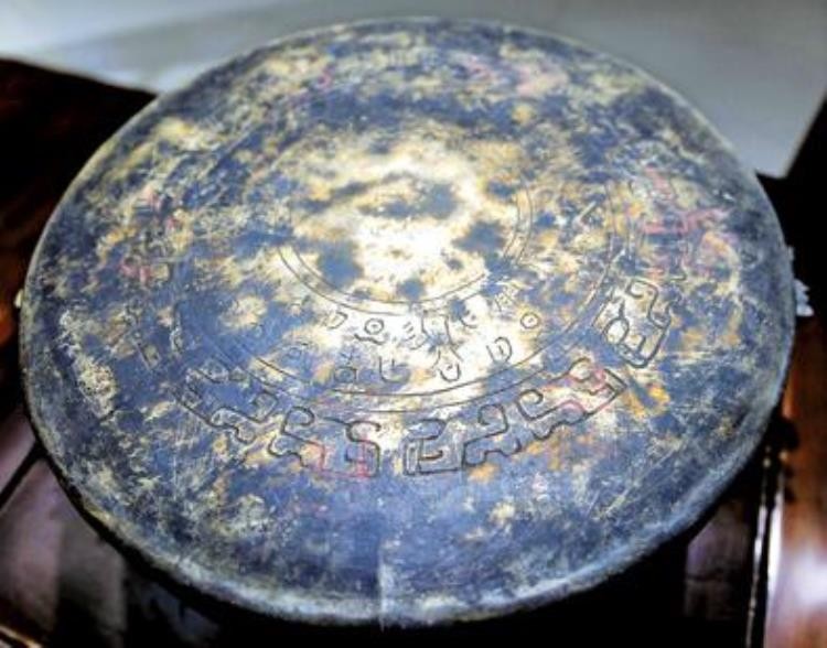 红水河流域发现的一只铜鼓,鼓面虽被磨损,字迹仍清晰可见,已经历20代人传承,现藏在广西东兰铜鼓民间收藏馆。