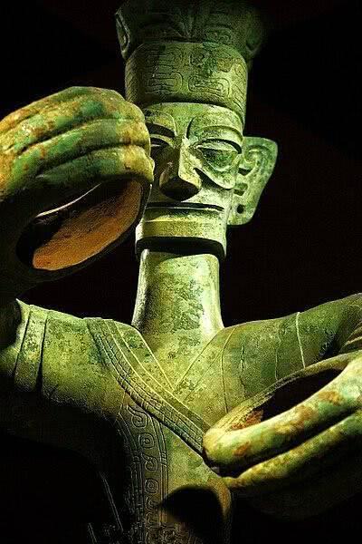 在三星堆遗址中,一个魁伟的青铜人像十分不共凡响。我们都了解,青铜文明的昌盛时期是商、周,其时期留住的青铜器都道求气派持沉、庄沉,然而三星堆的青铜器却恰巧差异,它们洒脱、洒脱,布满神秘的设想力。这个魁伟的青铜人,大鼻子大嘴,并且嘴上似乎涂着朱砂,眼睛呈三角形。如许极端夸张的人像,在我国考古史上是仅有的创造。为什么要用青铜雕刻这个魁伟的人像?他是谁?代表什么?人们向来不弄领会。