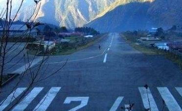 举世闻名的尼泊尔卢卡拉机场在1964年开始使用,它是由曾经第一个登上珠穆朗玛峰的埃德蒙众筹而建造的,其跑道长度和机场海拔是全世界绝无仅有的。尼泊尔卢卡拉机场的跑道只有460米,宽只有20米,只比特岗汀机场长一点,但是它更危险的原因是它的高海拔。