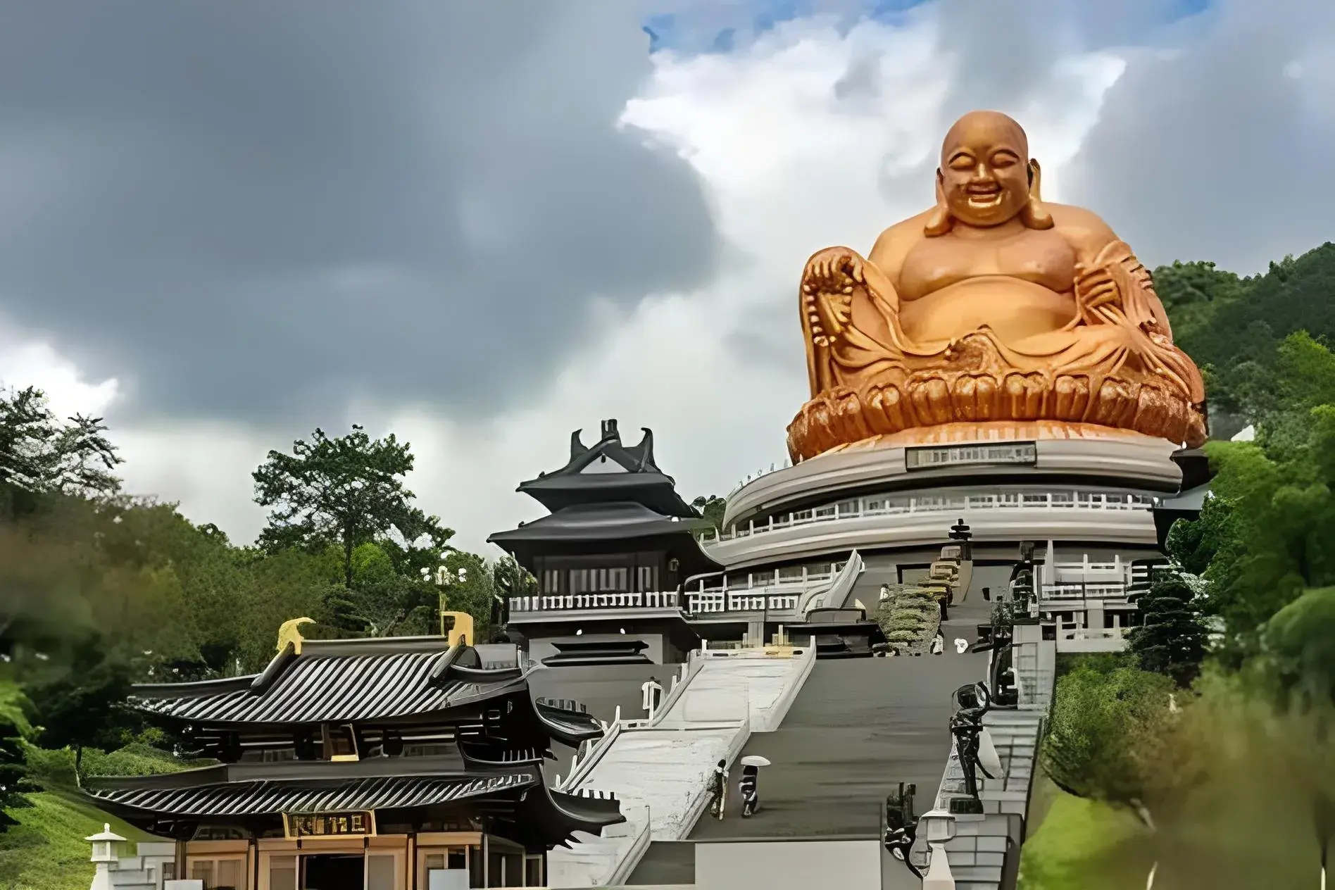 中国一些寺庙中供奉的笑口常开弥勒像。大肚能容,容天下难容之事;笑口常开,笑世间可笑之人。弥勒信仰在古代中国民间有广泛的影响,中国寺庙成千上万,很多寺庙中都有弥勒佛塑像。