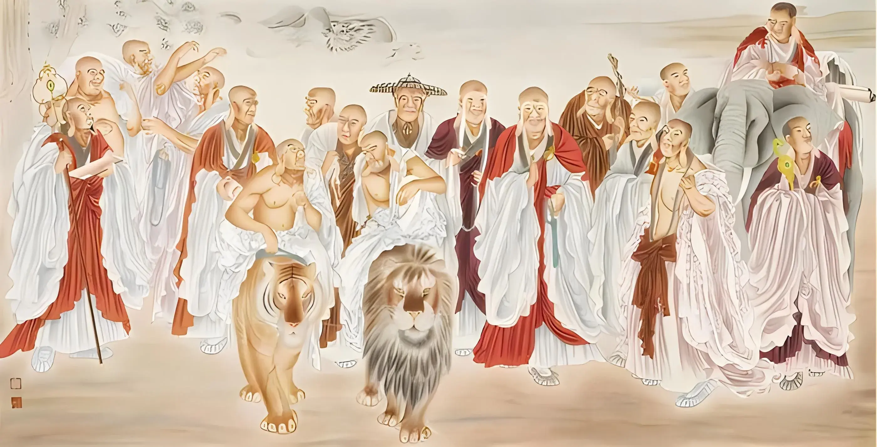 十八罗汉是指佛教传说中十八位永住世间、护持正法的阿罗汉,由十六罗汉加二尊者而来。十八罗汉分别是:骑鹿罗汉、欢喜罗汉、举钵罗汉、托塔罗汉、静坐罗汉、过江罗汉、骑象罗汉、笑狮罗汉、开心罗汉、探手罗汉、沉思罗汉、挖耳罗汉、布袋罗汉、芭蕉罗汉、长眉罗汉、看门罗汉、降龙罗汉、伏虎罗汉。他们都是历史人物,均为释迦牟尼的弟子。
